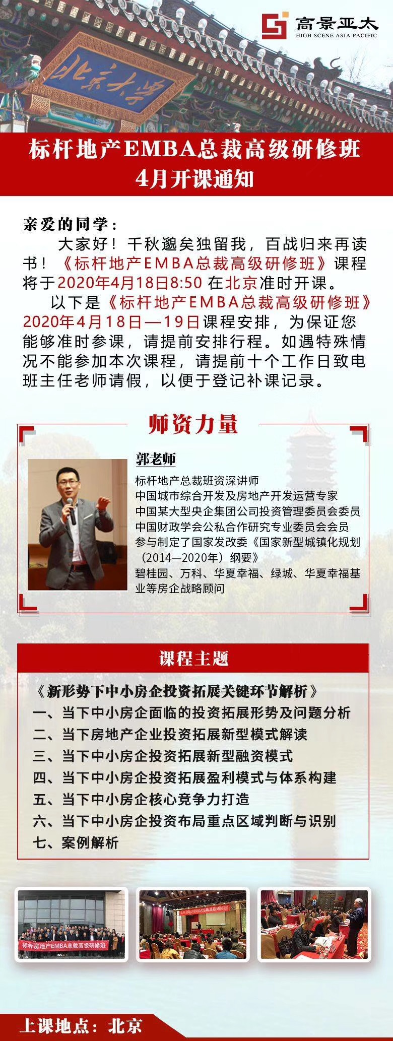 2020年4月18日标杆地产EMBA总裁高级研修班开课通知