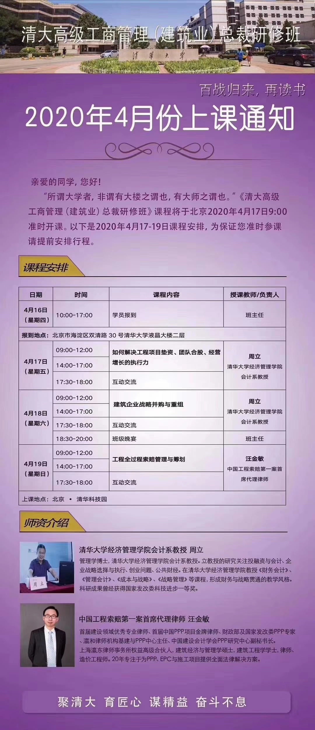2020年4月17日清华大学建筑业总裁班上课通知
