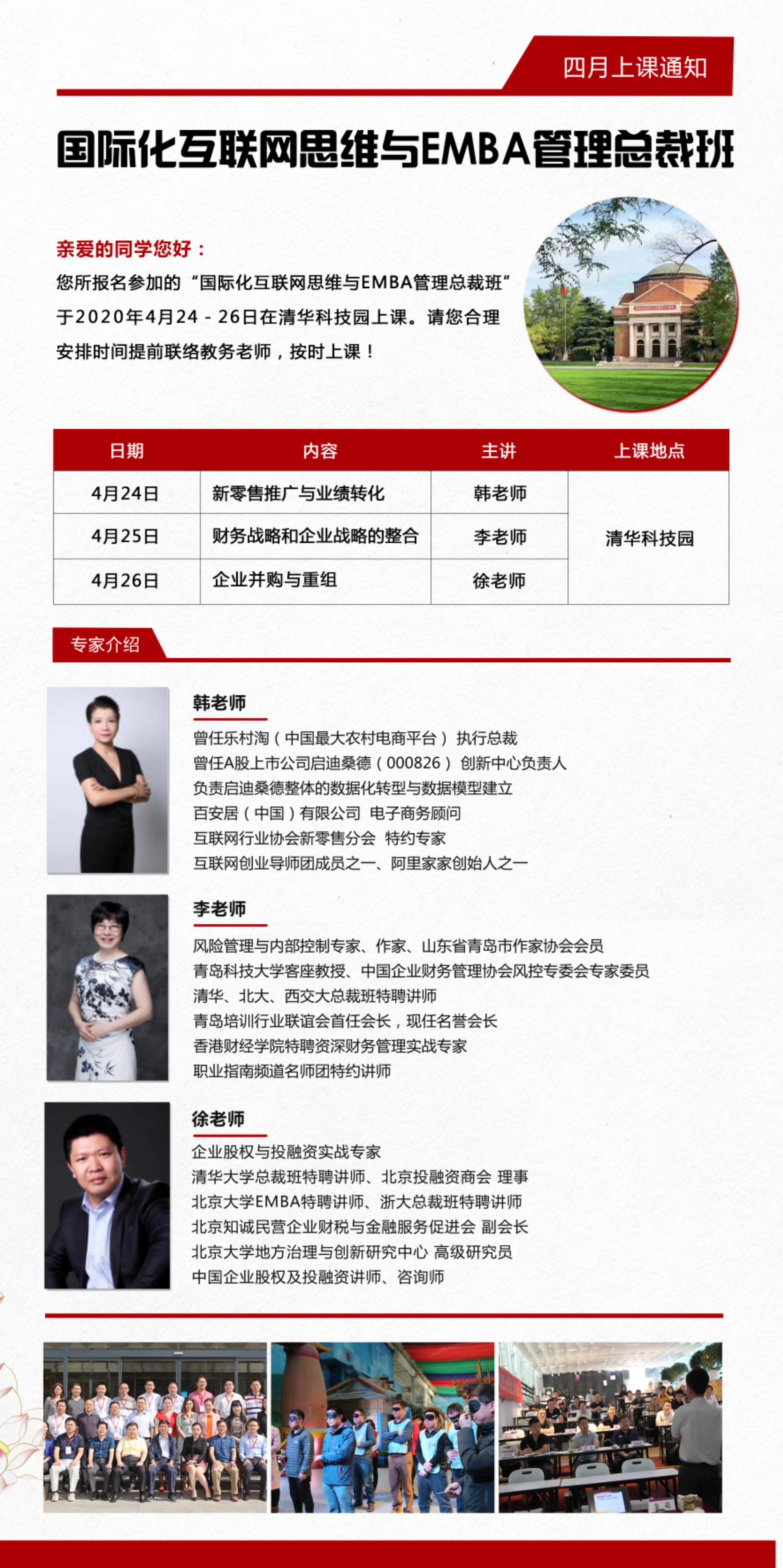2020年4月26日国际化互联网思维与EMBA总裁研修班开课通知