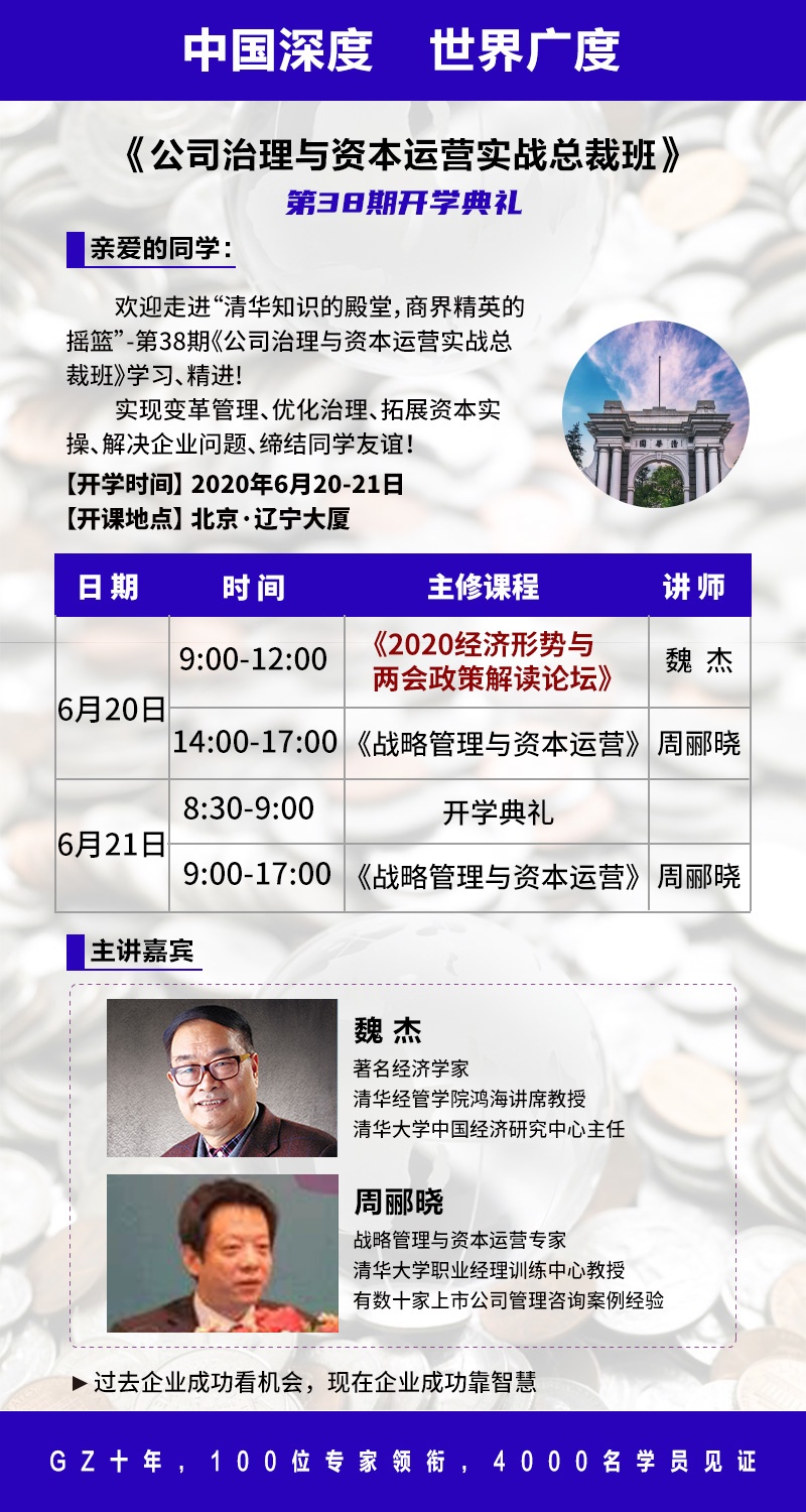 2020年6月20日清华公司治理与资本运营实战总裁班开学典礼课表