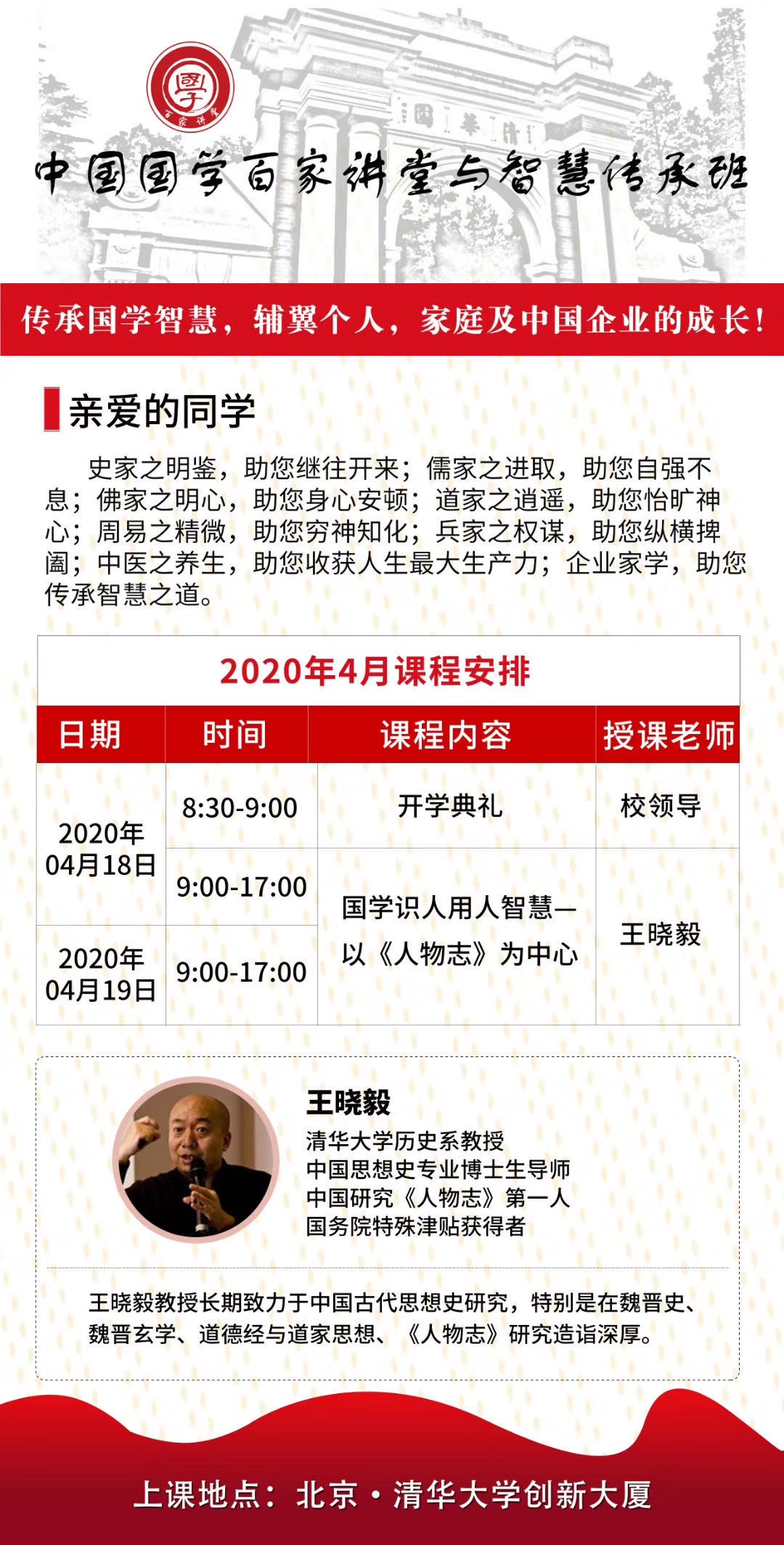 中国国学百家讲堂与智慧传承班春季班开学典礼上课通知
