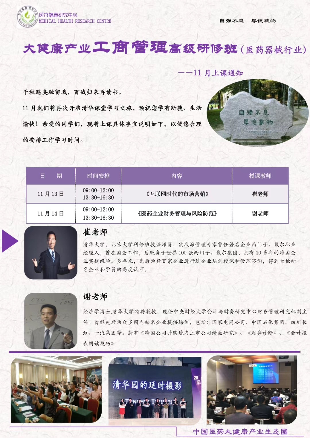 2020年11月13日大健康产业工商管理高级研修班上课通知