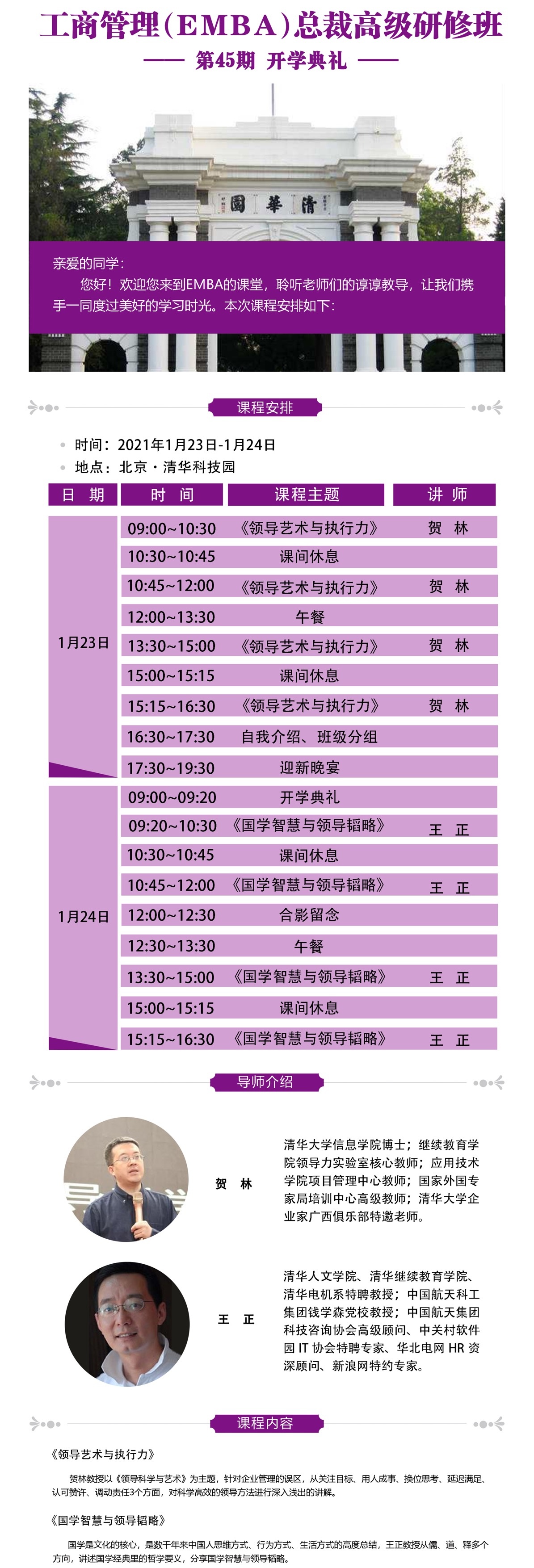 2021年1月23日清华大学工商管理EMBA总裁高级研修班开学典礼通知
