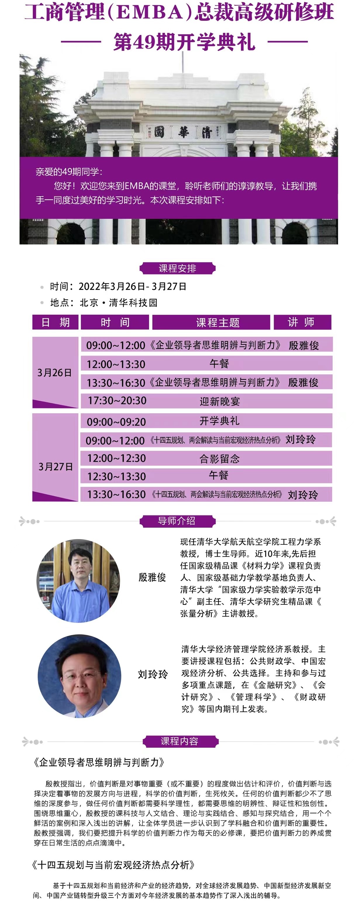 您好!欢迎您来到EMBA的课堂,聆听老师们的谆谆教导,让我们携手一同度过美好的学习时光。本次课程安排如下: