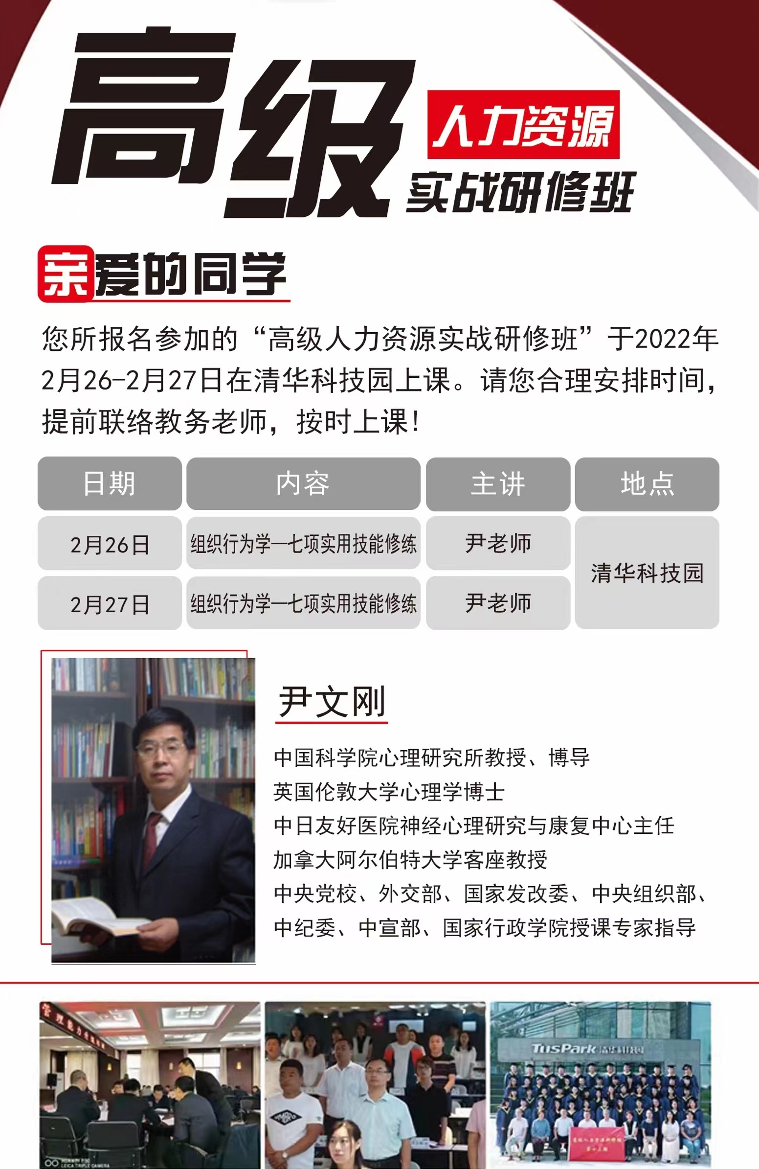 2022年2月26日清华大学高级人力资源实战研修班开课通知