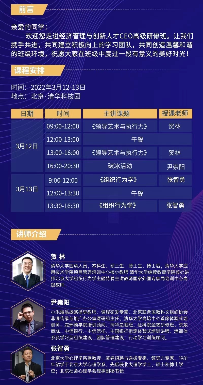 2022年3月13日清华大学经济管理与创新人才CEO高级研修班上课通知