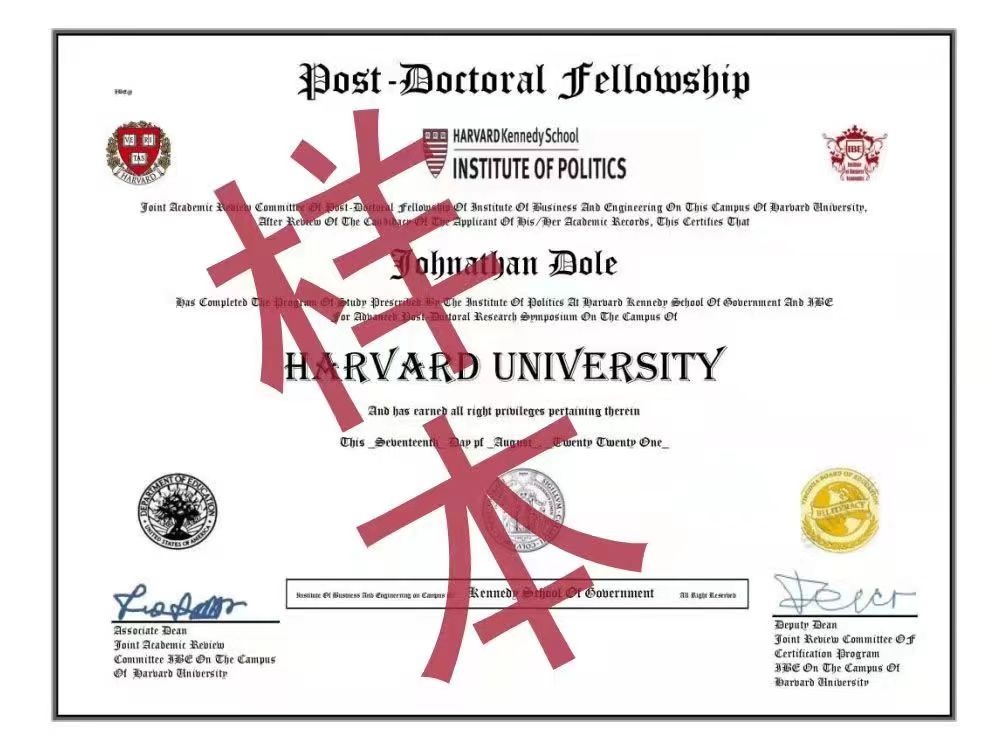 在哈佛大学从事博士后研究可以获得正式的证书,以下是哈佛大学博士后证书样本
