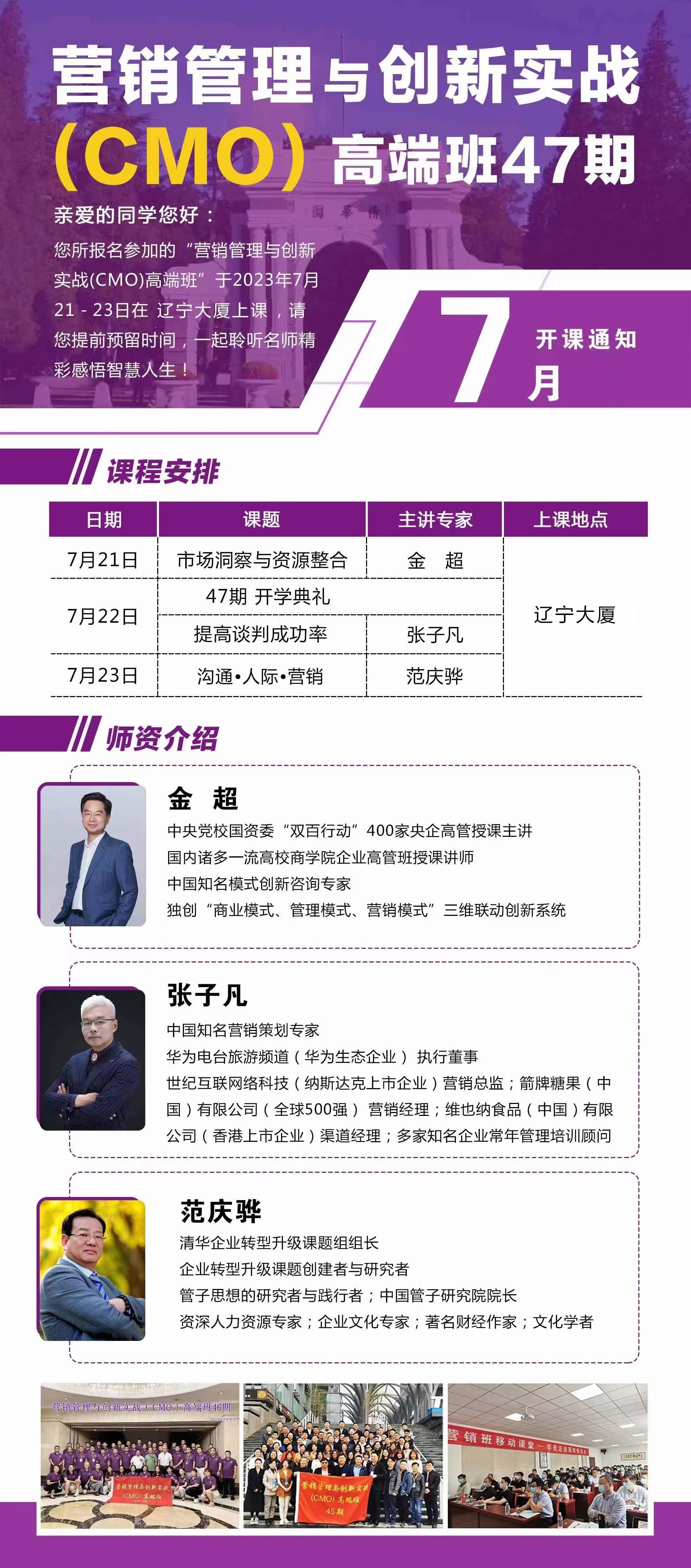 2023年7月21日营销与创新实战CMO高端班开课通知