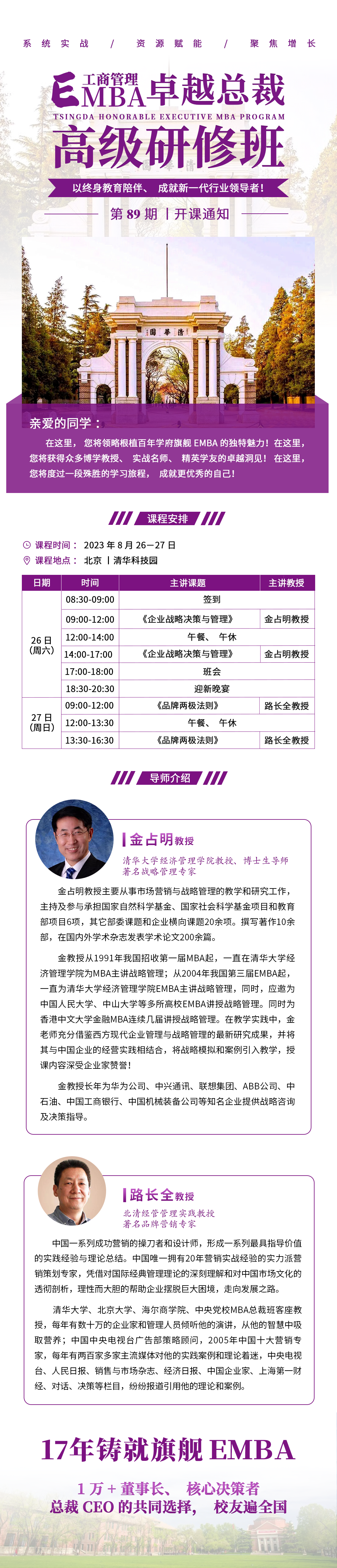 2023年8月26日工商管理EMBA卓越总裁高级研修班开课通知